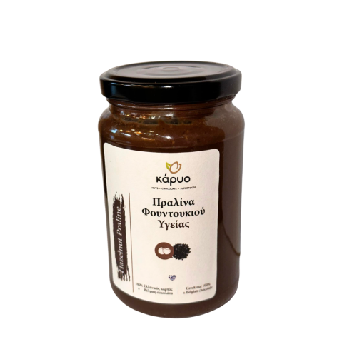 Από 60% Ελληνικό Φουντούκι που καβουρδίζεται και αλέθεται από εμάςκαι 40% Πραλίνα Υγείας Βελγίου