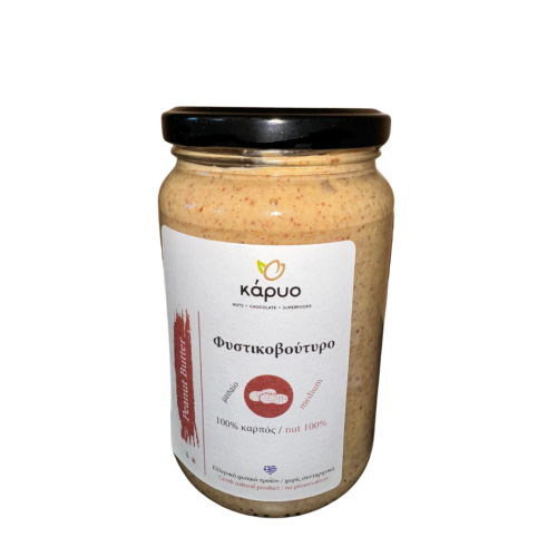 Καβουρδίζονται και αλέθονται από Το Κάρυο με 100% φιστίκι Αράπικο Ελληνικό χωρίς πρόσθετα, χωρίς έλαια, χωρίς συντηρητικά.