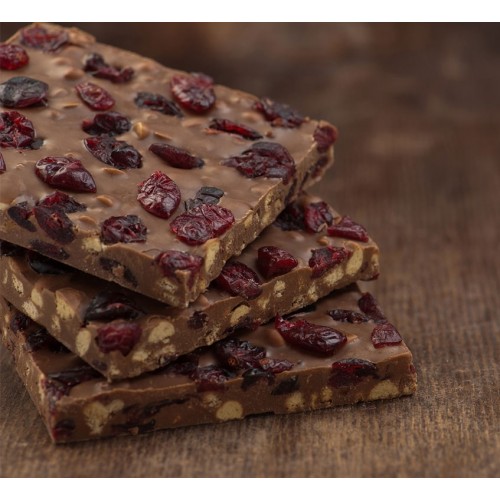 Χειροποίητες σοκολάτες γάλακτος με μπισκότο βανίλιας και cranberries.
